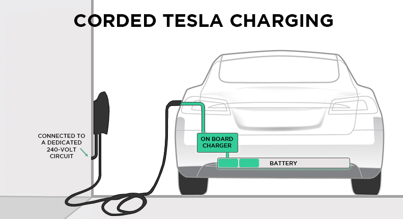 Tesla recommends the Wall Connector as the most convenient home charging equipment for Tesla vehicles. Permanently mounted to a wall or post, the Wall Connector can be installed both indoors and outdoors. A defining feature is the ability to be installed with any circuit breaker ranging from 15 to 100 amps, which allows the Wall Connector to be custom fit to almost any electrical system. We recommend installing the Wall Connector with a power output to match the on-board charger of the vehicle, typically a 40, 60 or 90 amp circuit breaker.
