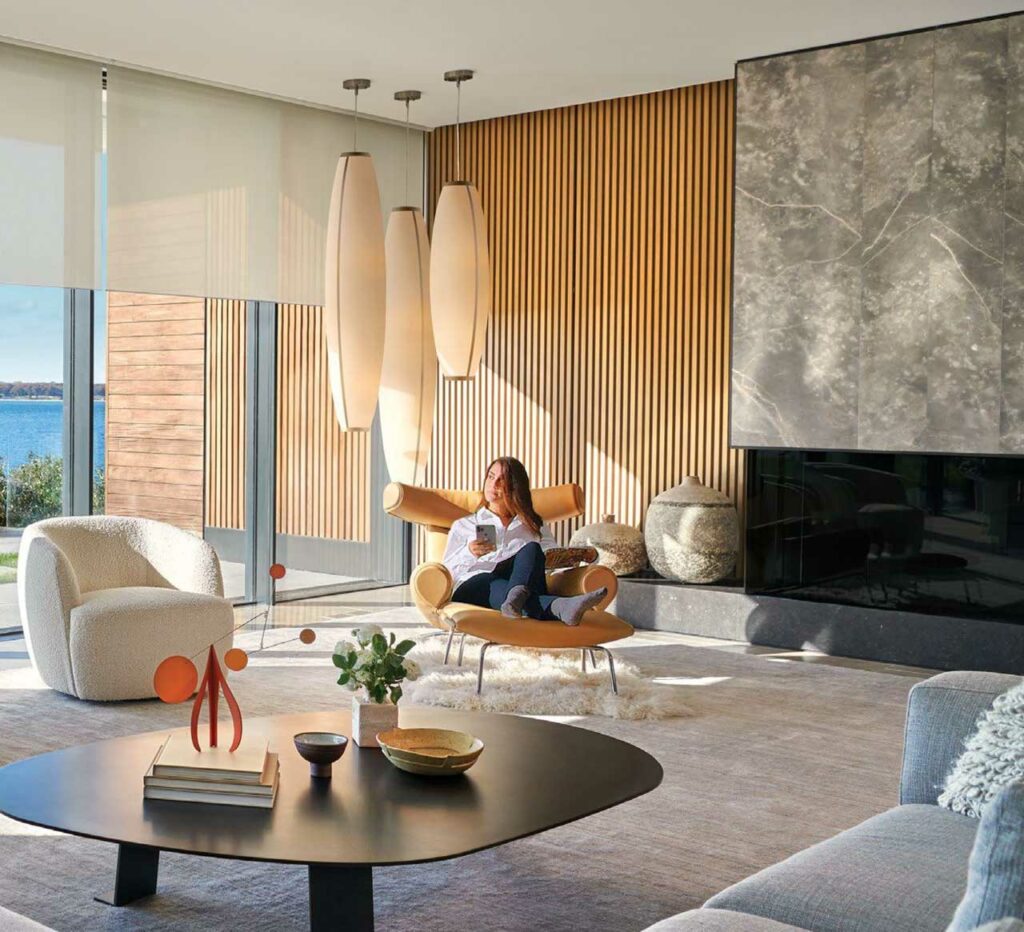 Daylight has a quality that we respond to emotionally. Colors read true, finishes reveal their texture, and an uplifting quality pervades any room bathed in daylight. As we become more conscious of our footprint on this planet, we realize that making the most of daylight in our homes simply makes sense. Utilizing daylight reduces our need for electric light, and saves energy. Lutron shading systems provide precision control of daylight – all at the touch of a button.